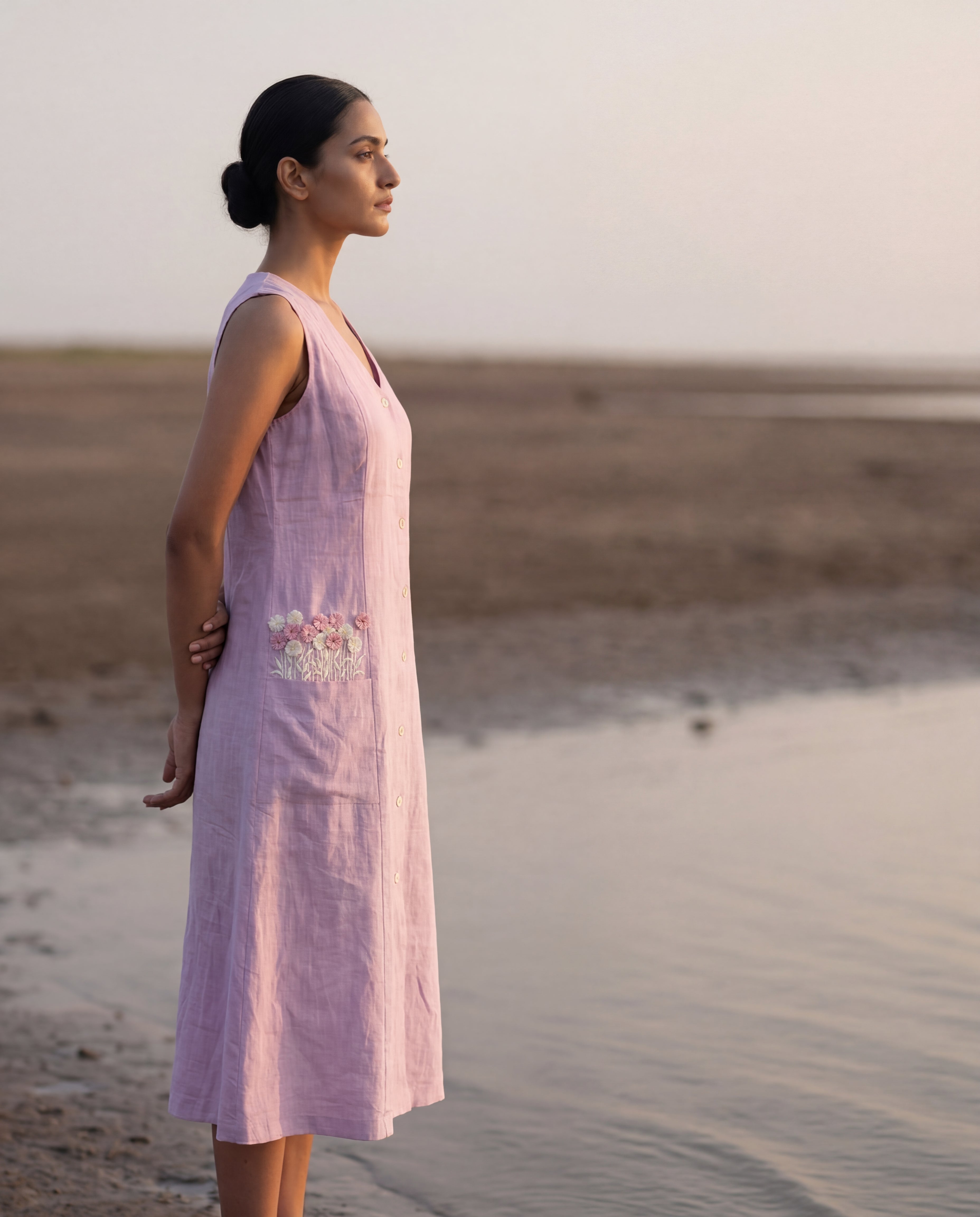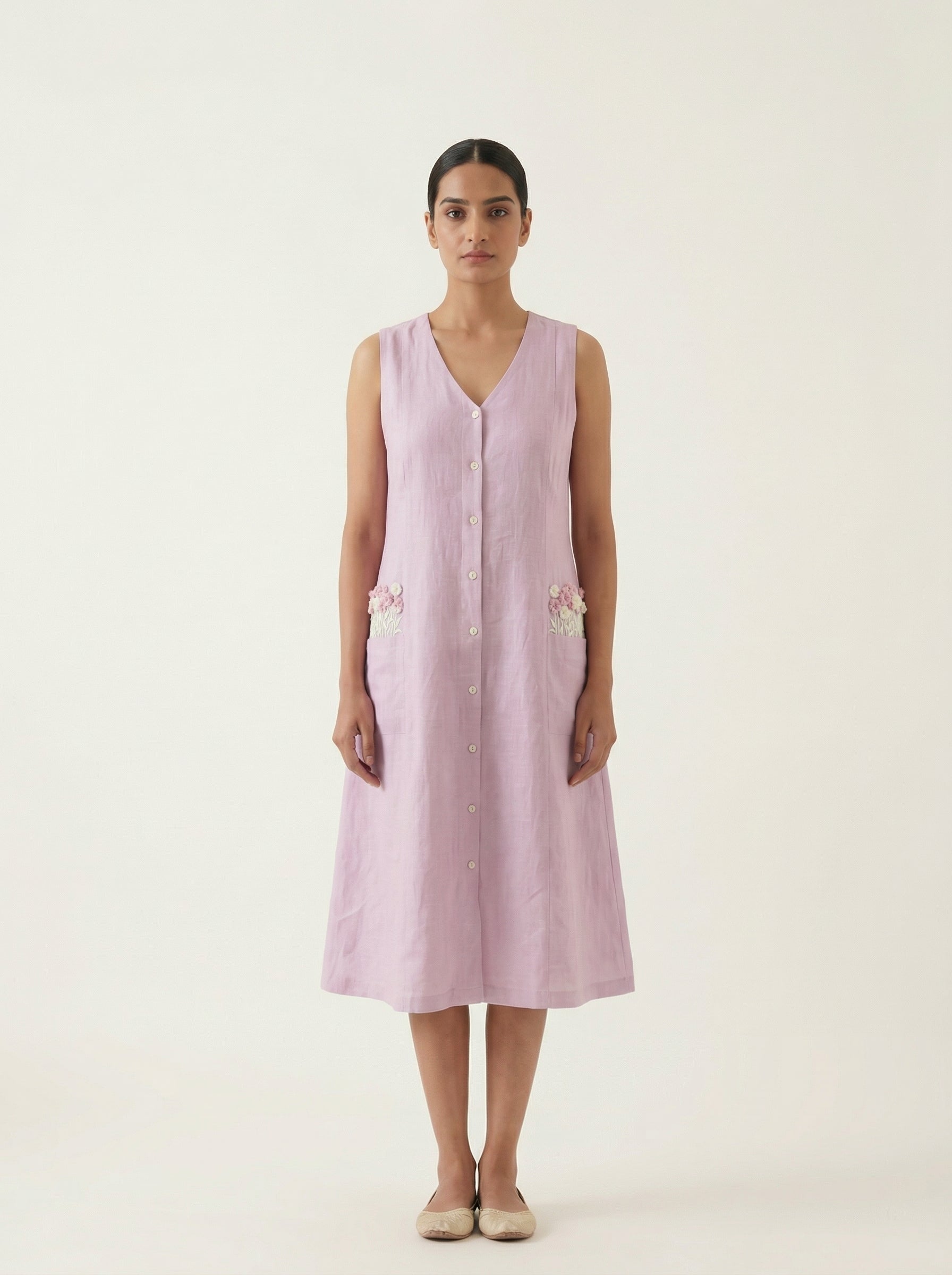 Linen one piece – with minimal thread detailing above pockets, for a refined, modern aesthetic. Crafted from premium linen for a breathable feel