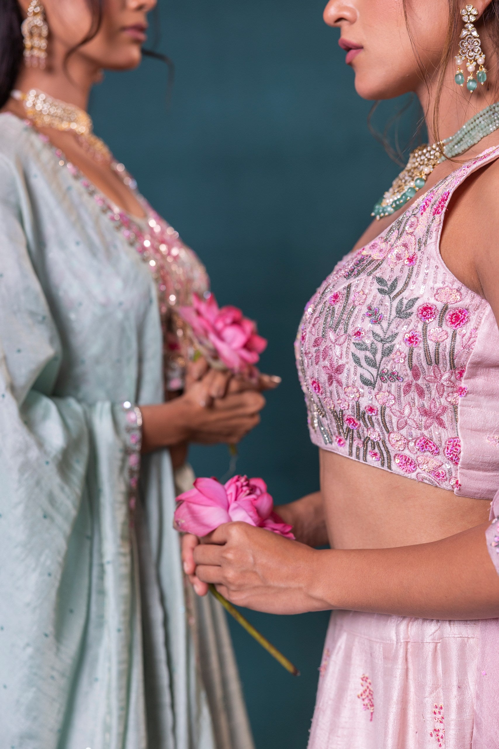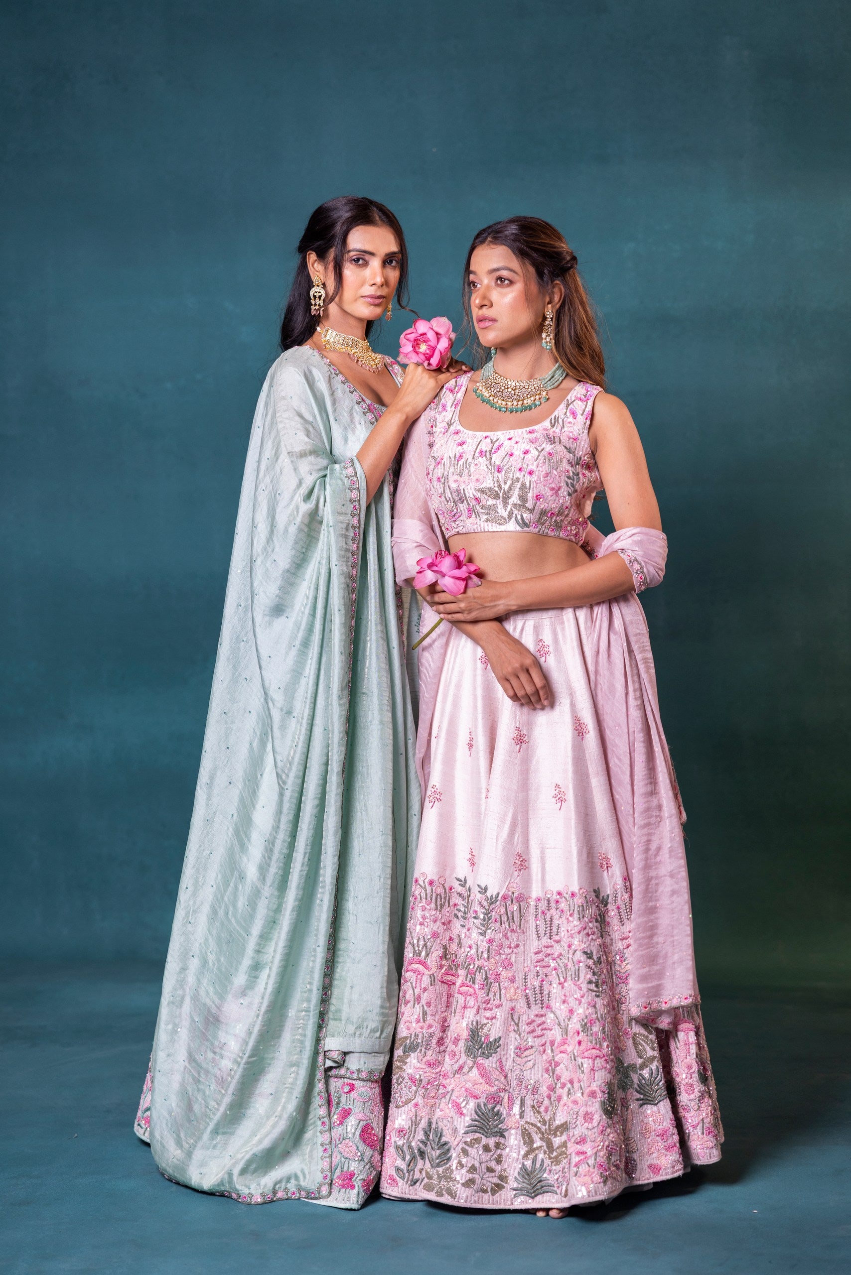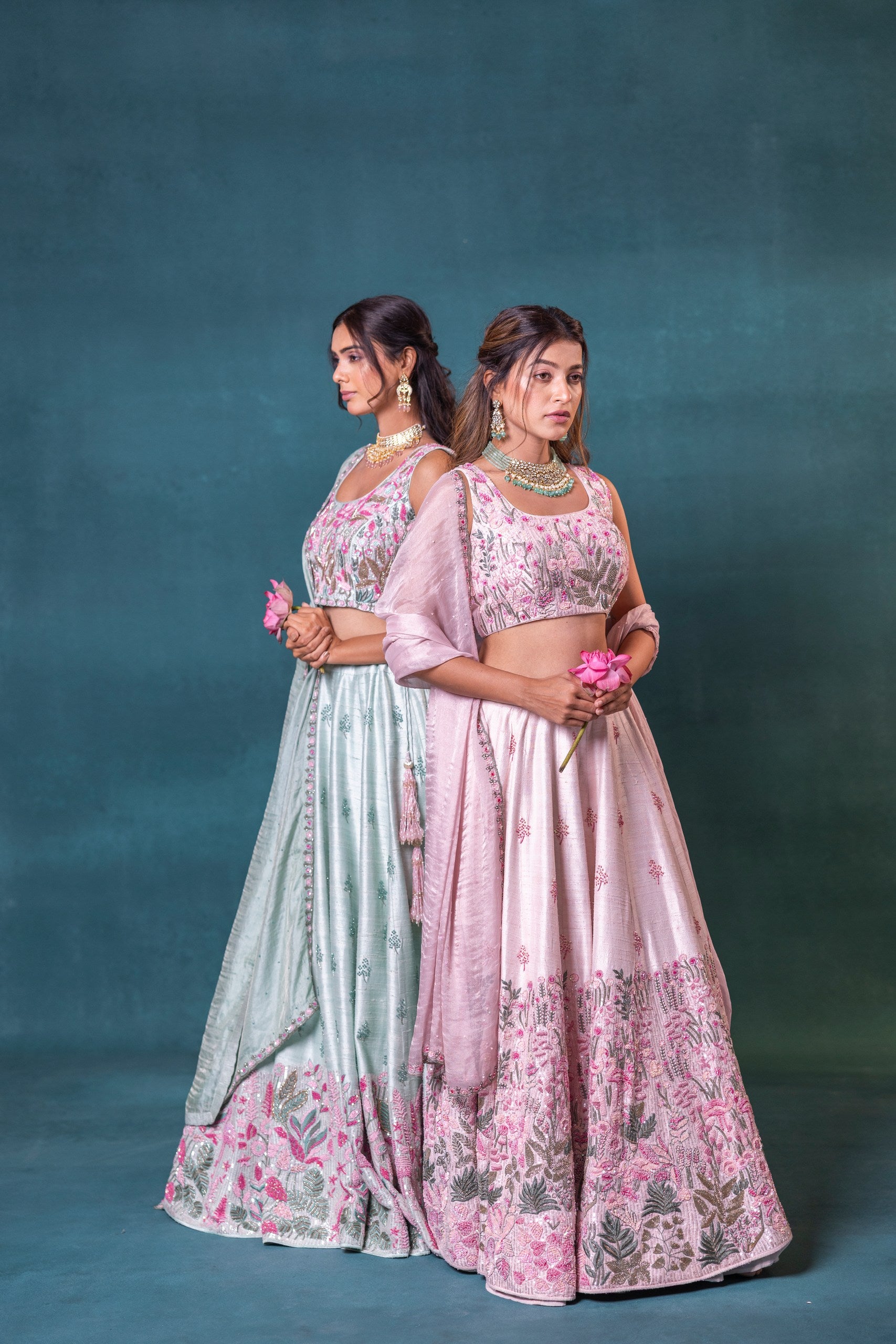 Soft, serene, and stunning—this sea green silk lehenga is a vision of delicate beauty. Embroidered with love and designed to flatter, this set is perfect for pastel-themed weddings and garden celebrations.